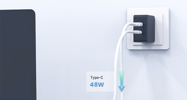 Multi-port output:USB-C1+USB-C2:30W+18W(48W)